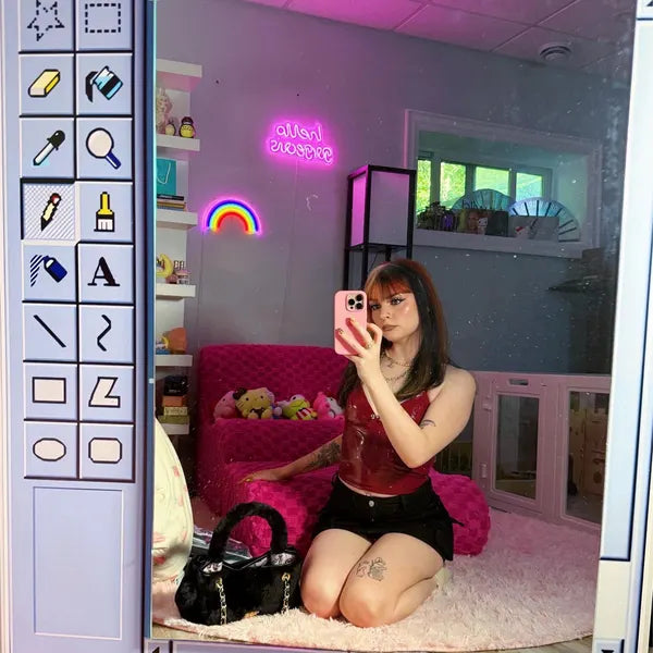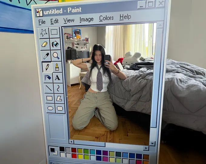 Nos miroirs sont conçus comme de véritables objets déco. Chaque pièce est inspirée du design rétro des années 90 et fabriquée avec un verre miroir de qualité haut de gamme. Le cadre mesure 90 × 60 cm et la surface miroir 56,2 × 40 cm, pour un rendu équilibré et durable, aussi esthétique que fonctionnel.